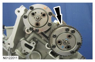 The timing mark on the exhaust VCT assembly should be in the 11 o'clock position.