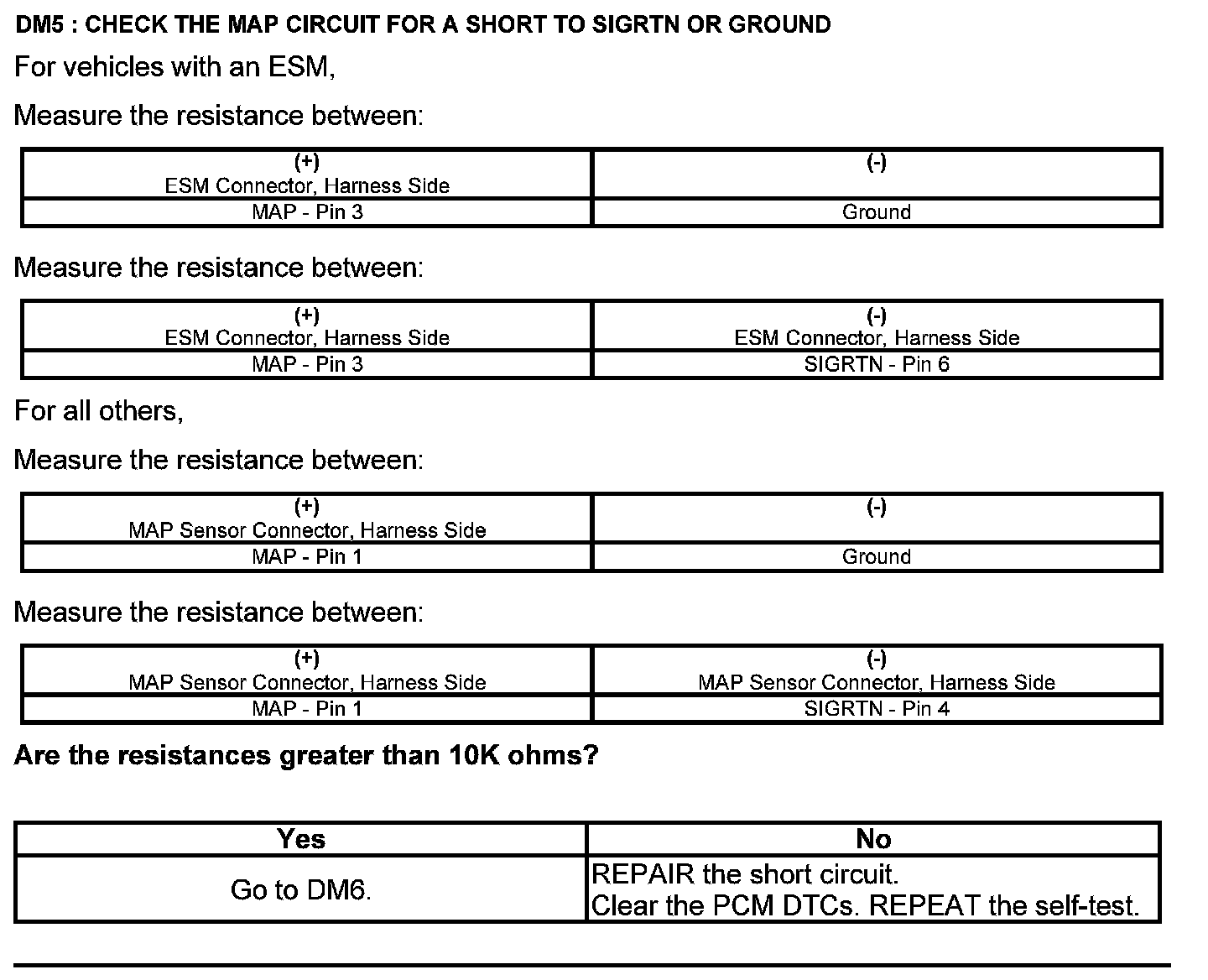 Test DM: Manifold Absolute Pressure (MAP) Sensor