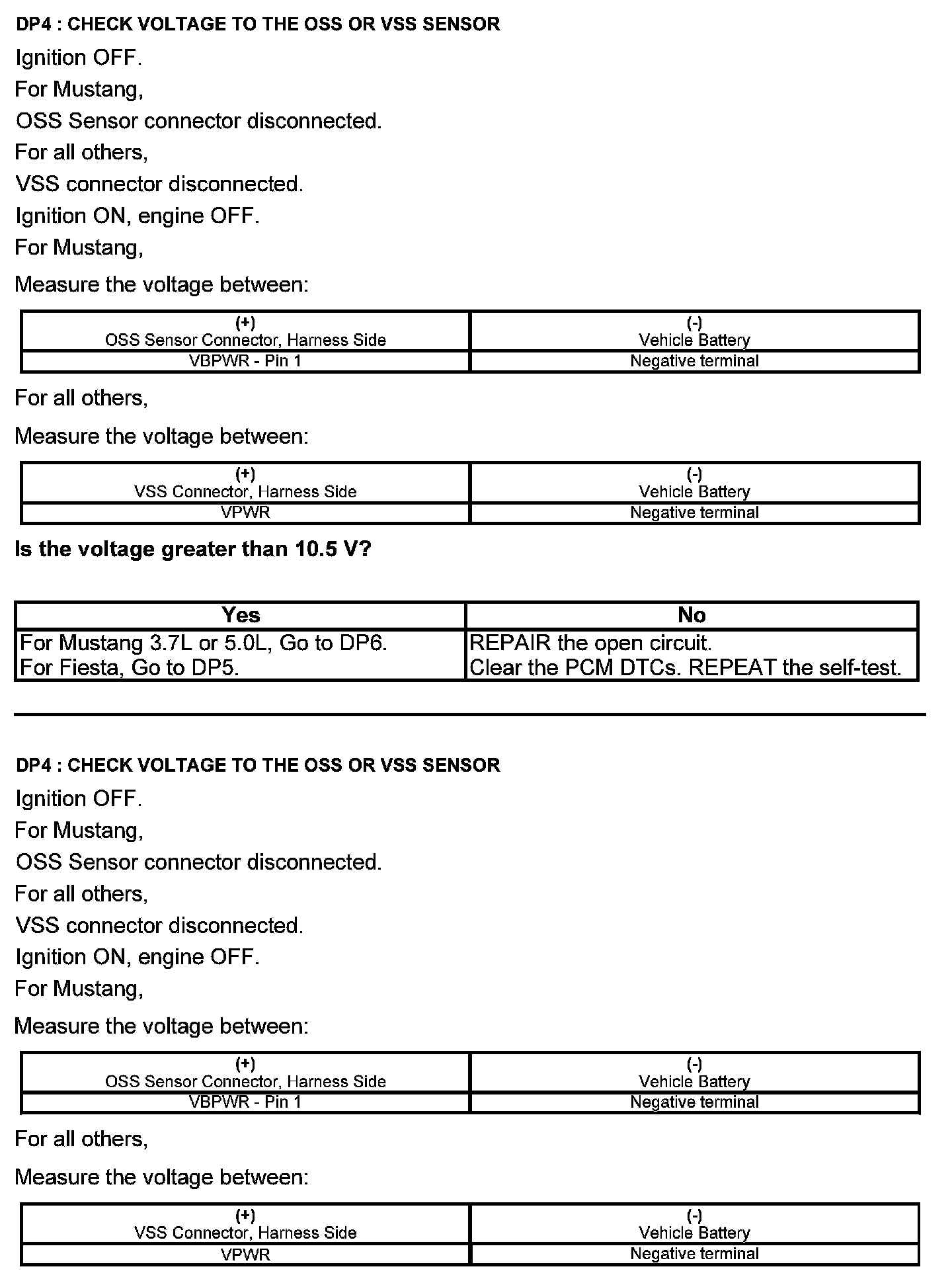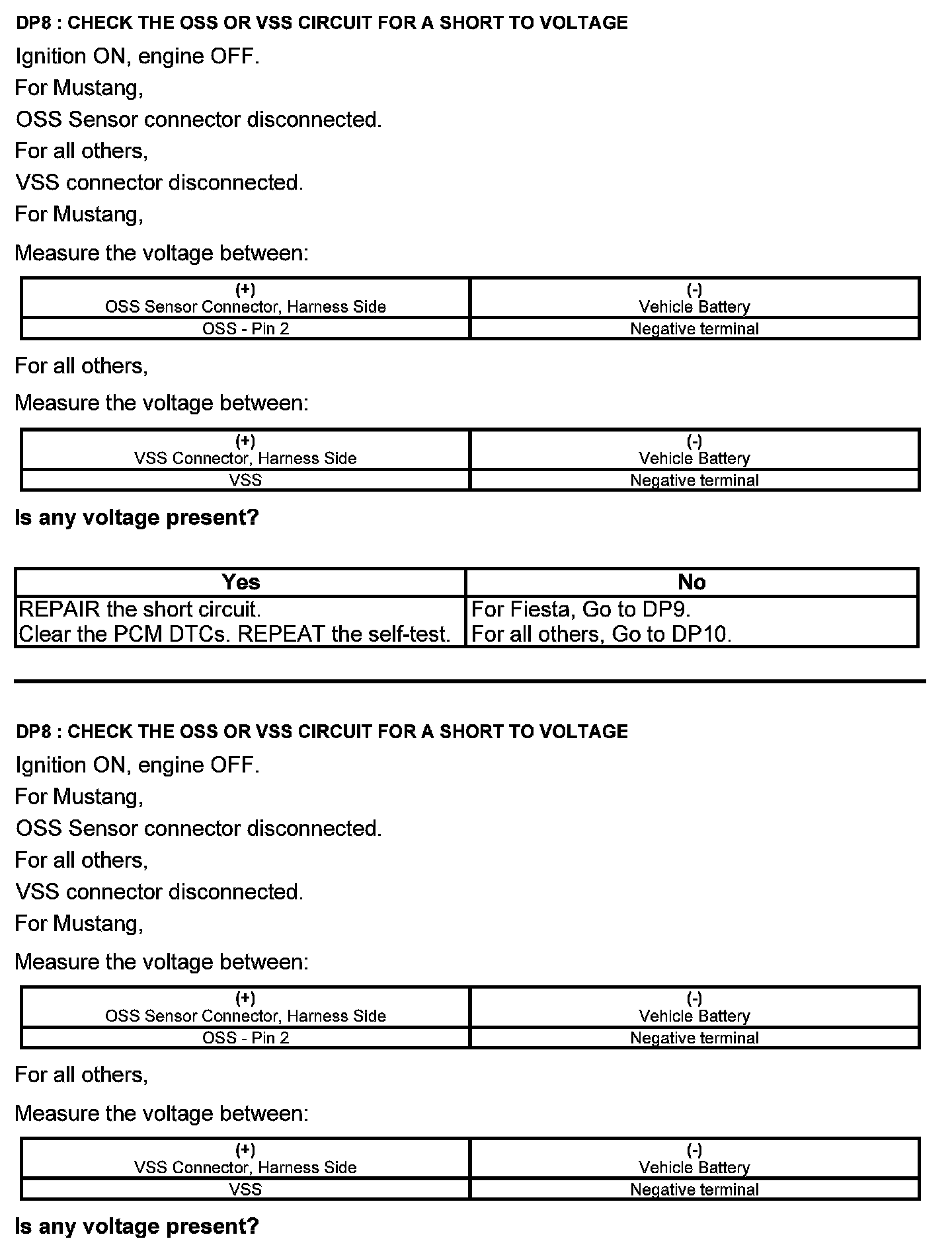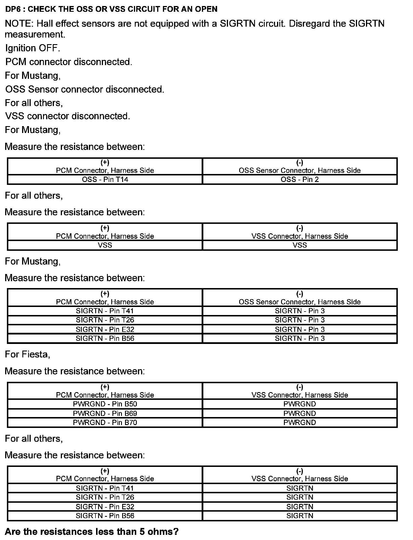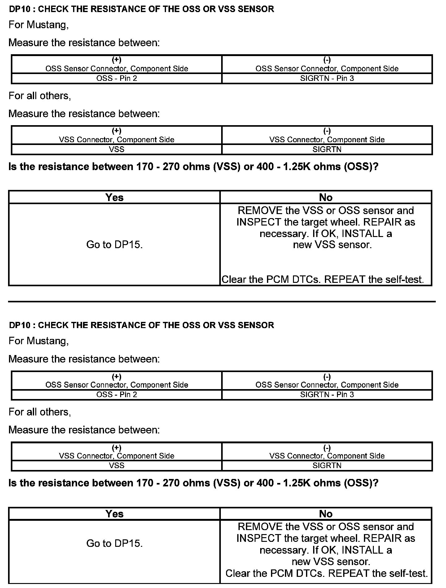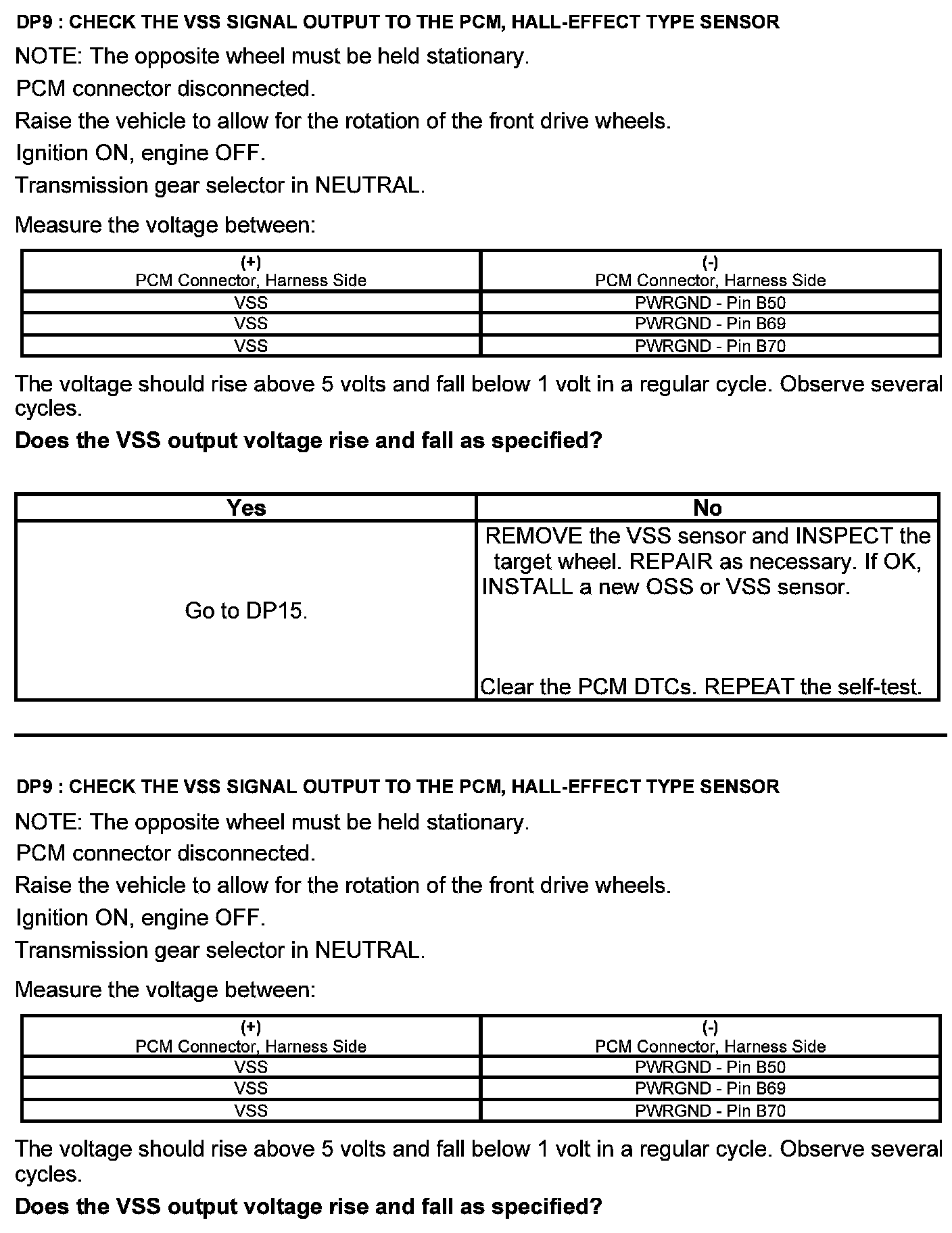 Test DP: Output Shaft Speed (OSS) Sensor/Vehicle Speed Sensor (VSS)