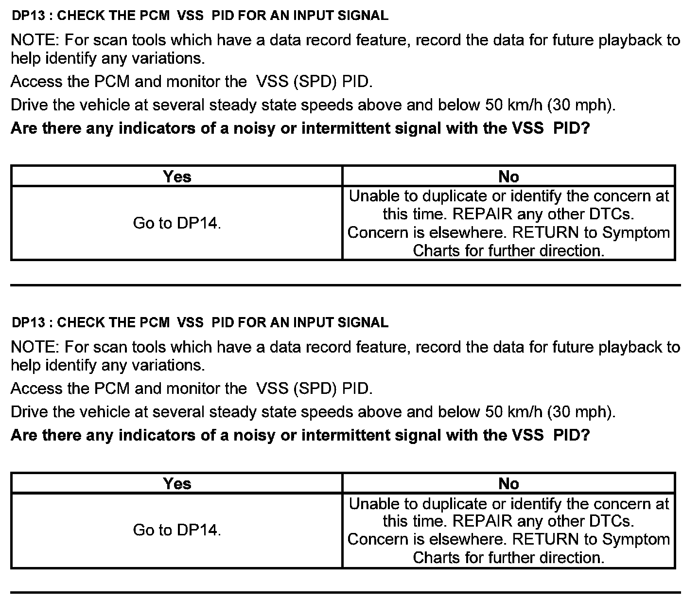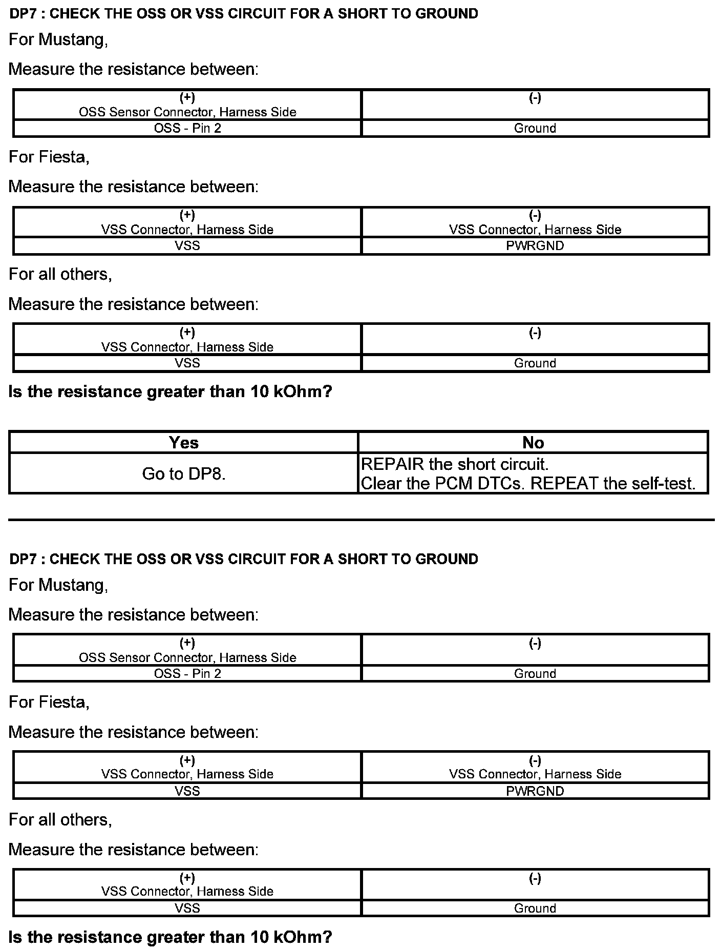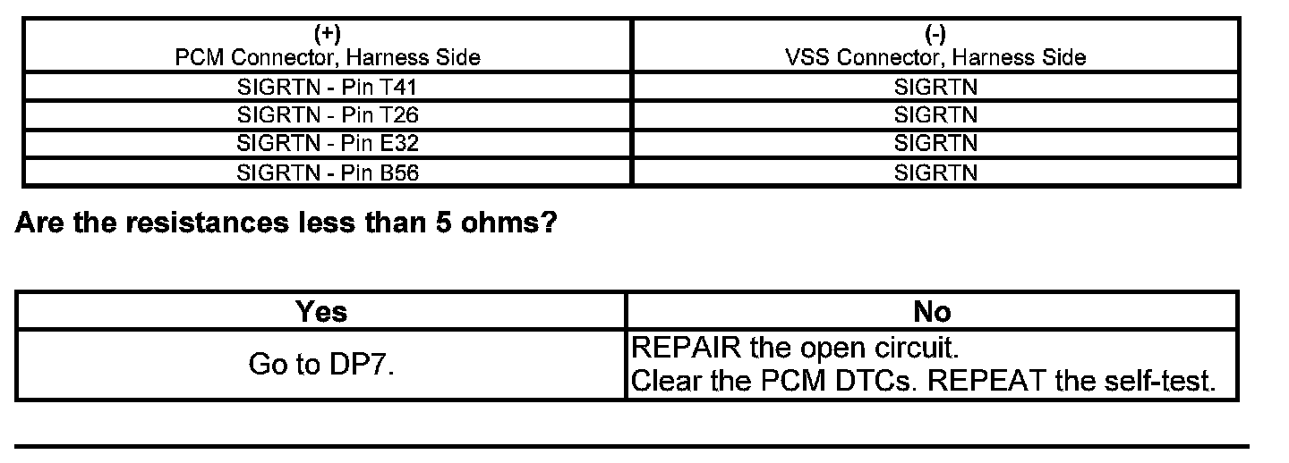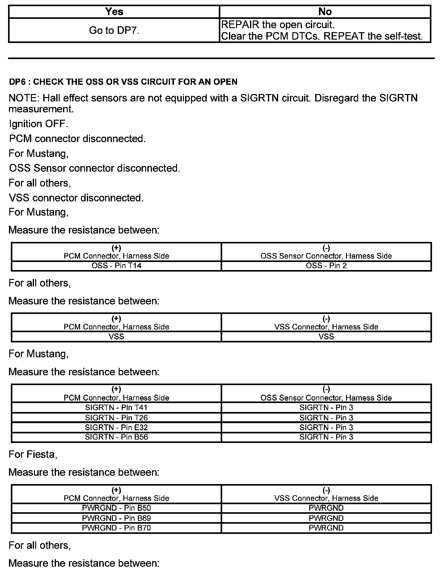 Test DP: Output Shaft Speed (OSS) Sensor/Vehicle Speed Sensor (VSS)