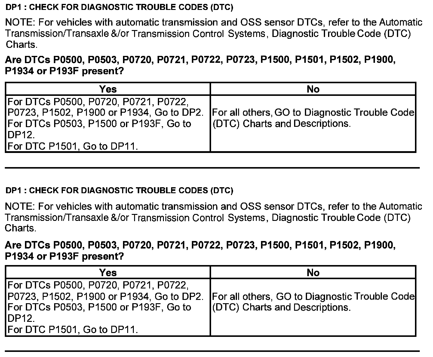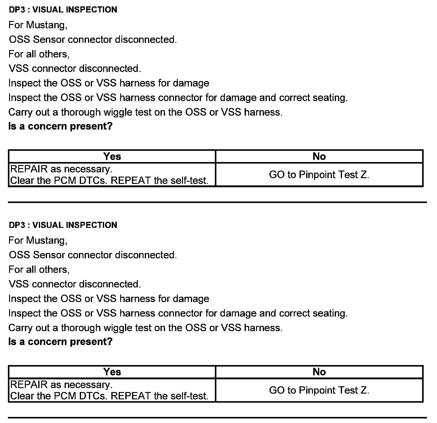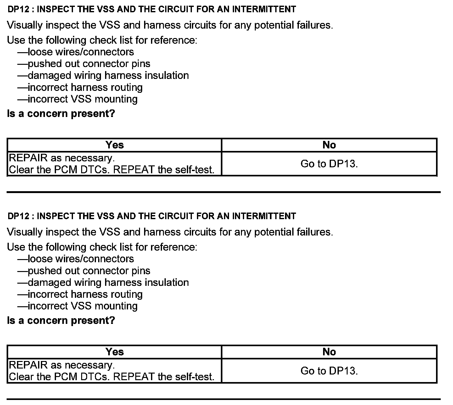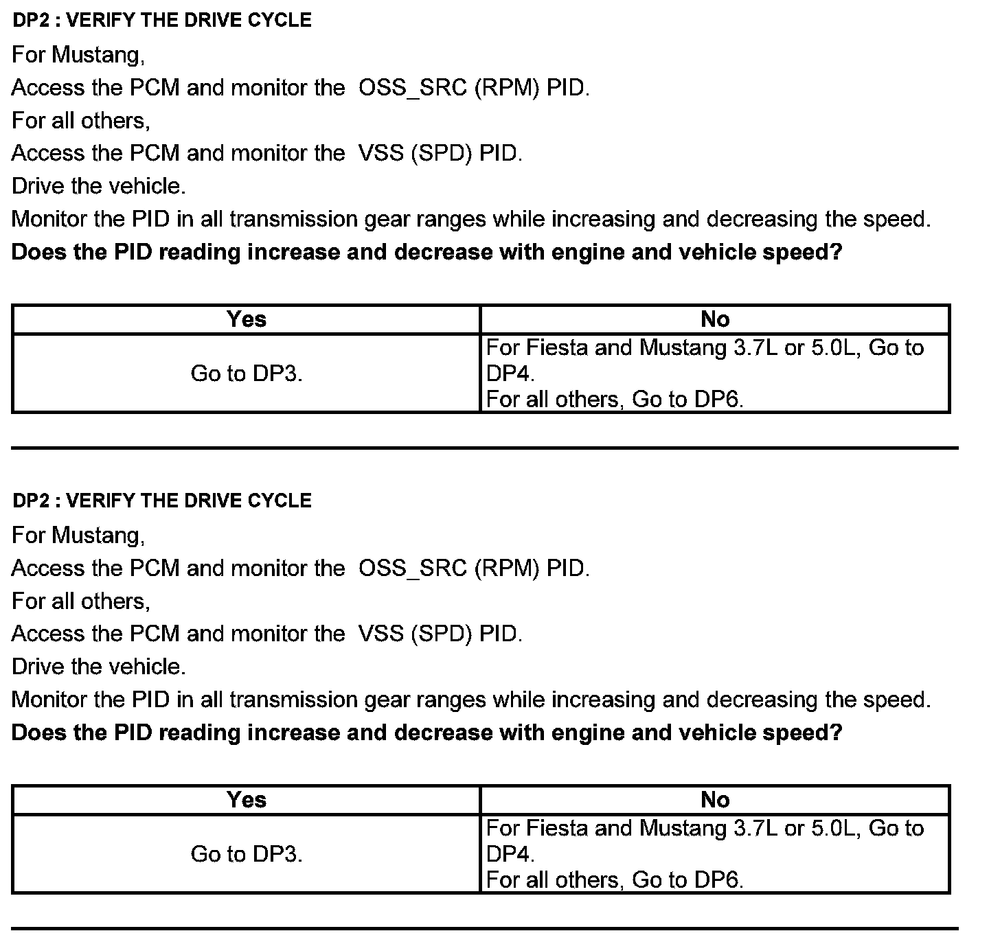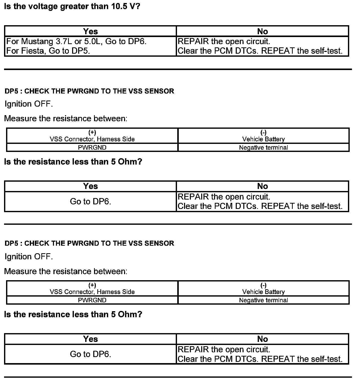 Test DP: Output Shaft Speed (OSS) Sensor/Vehicle Speed Sensor (VSS)