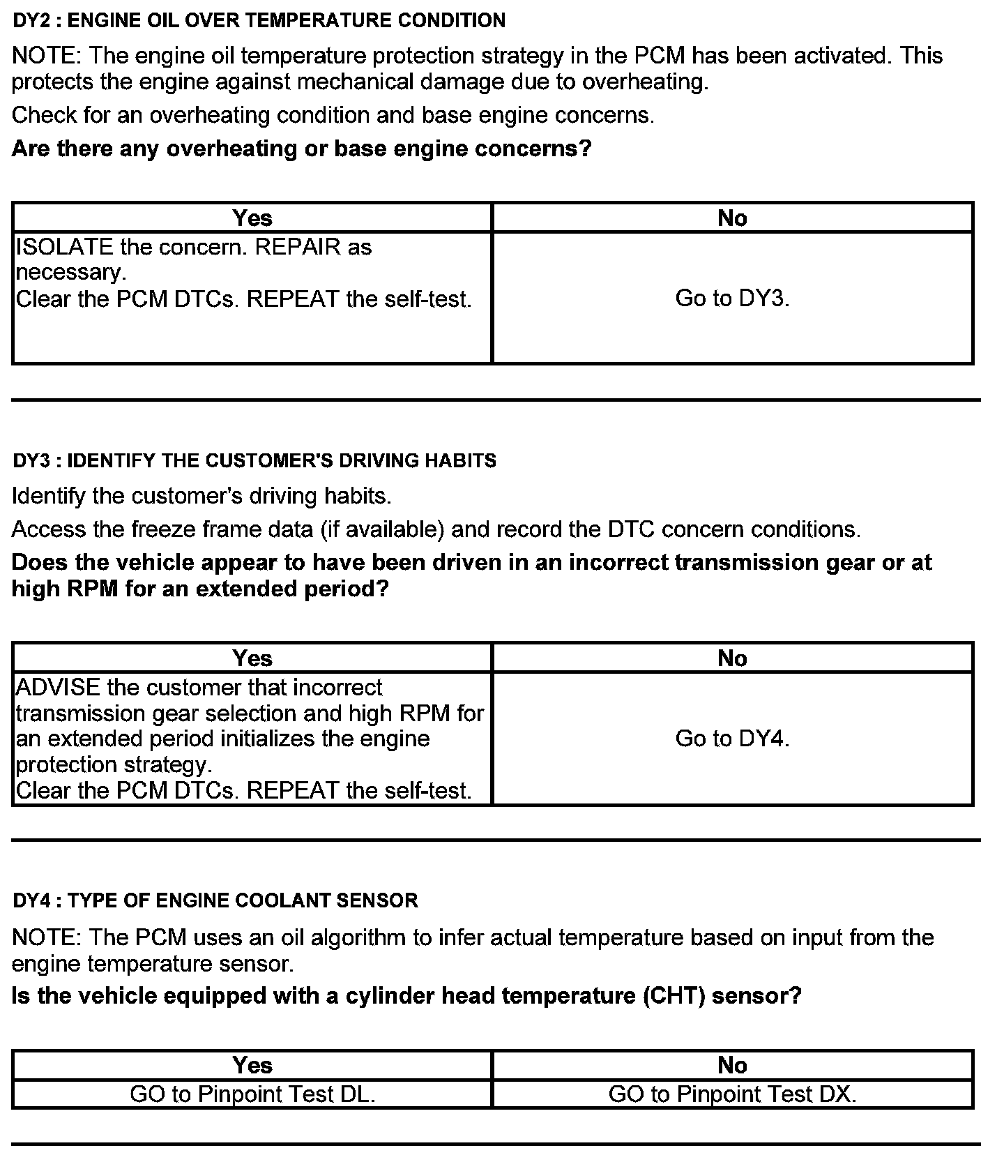 Test DY: Engine Oil Temperature (EOT) Sensor