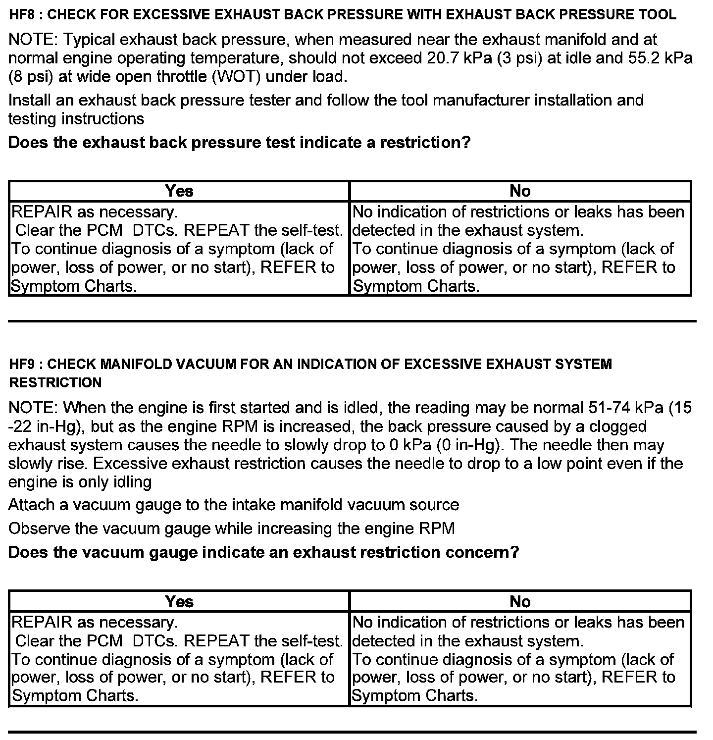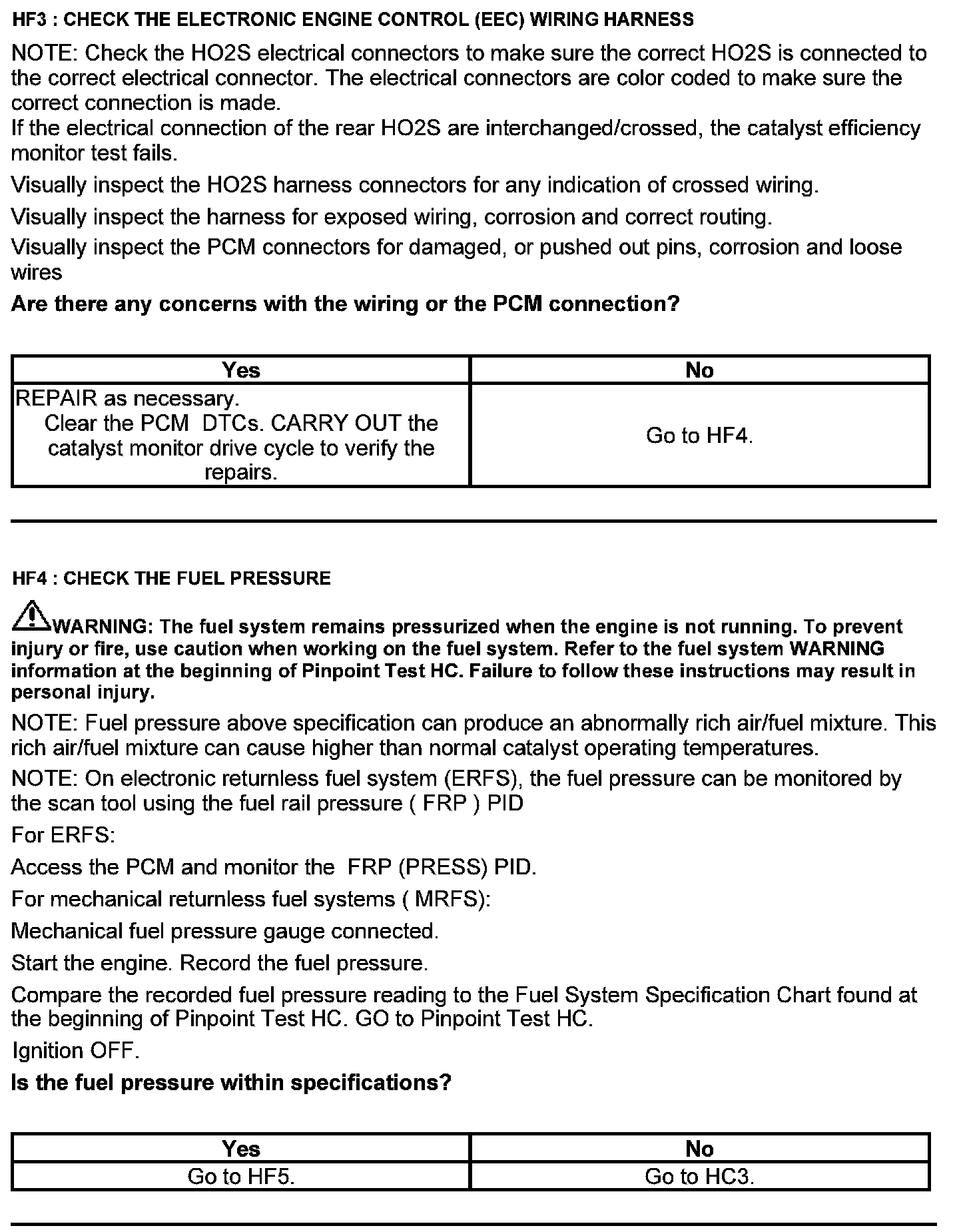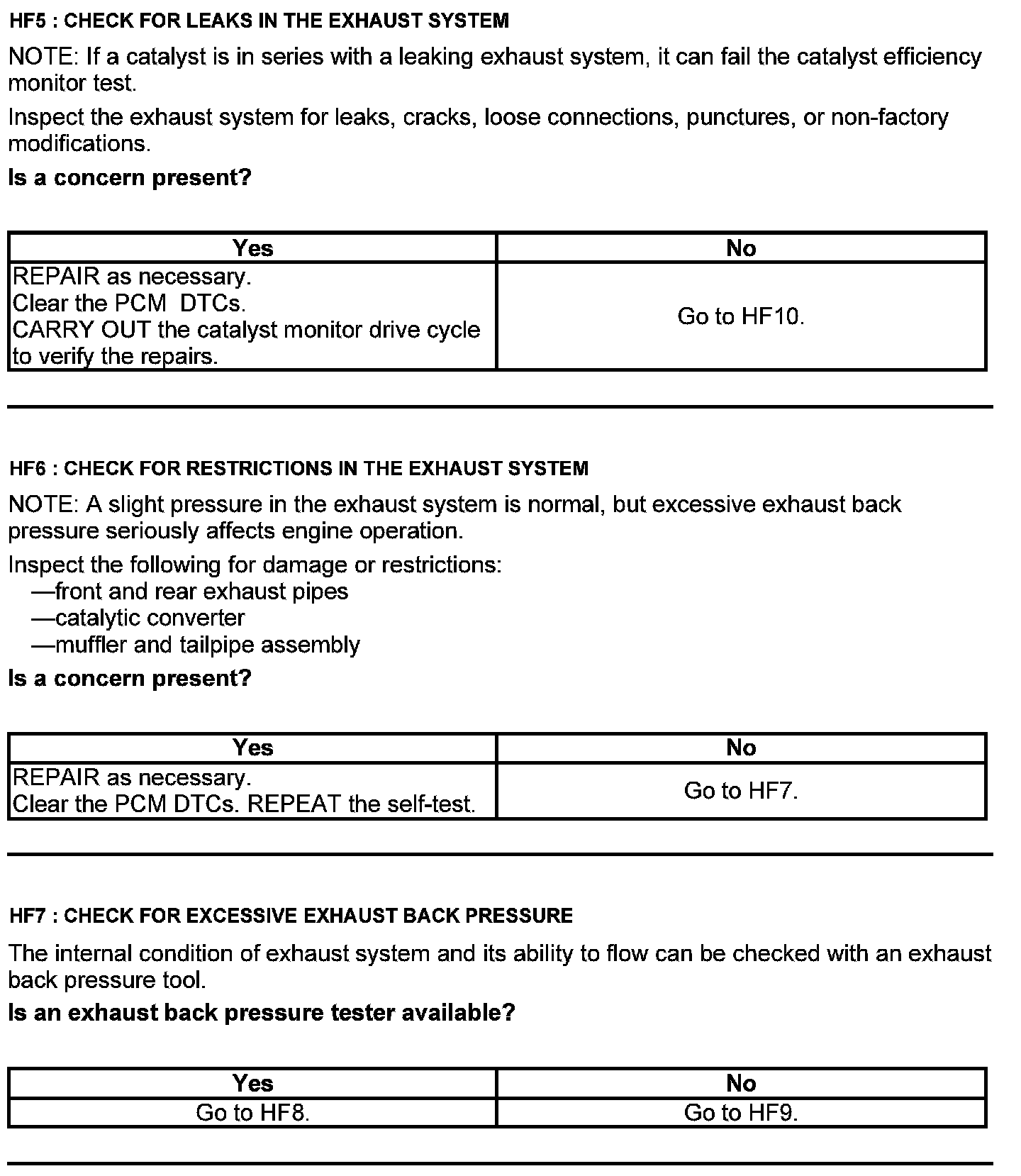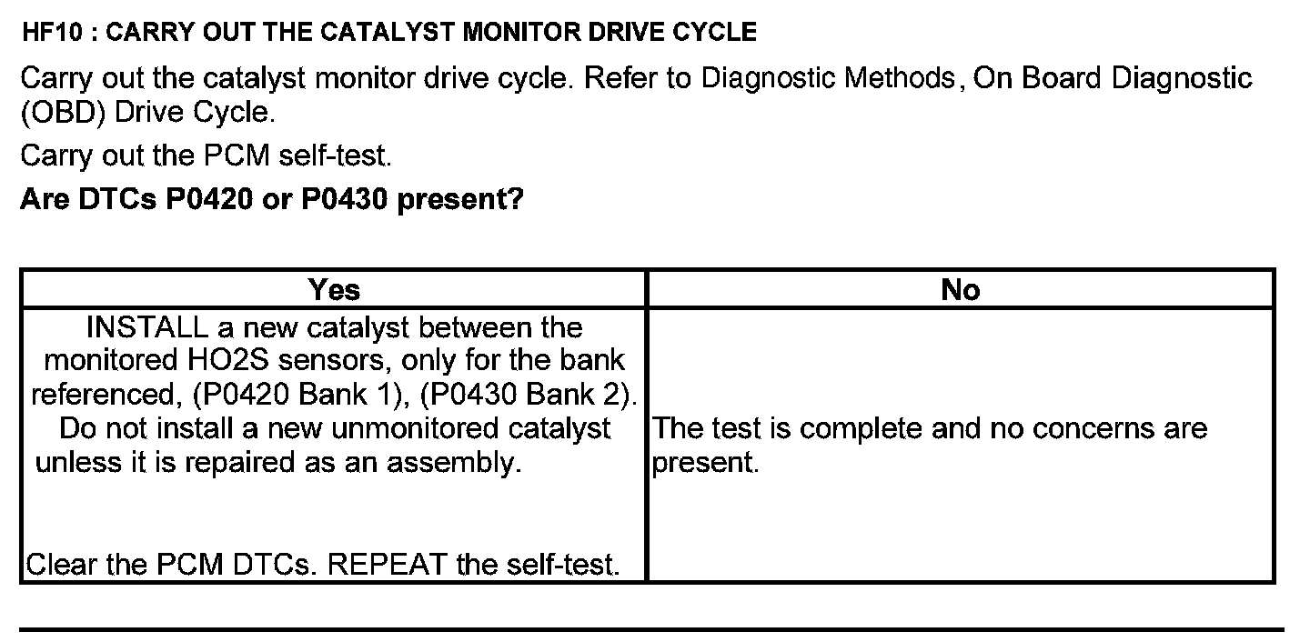 Test HF: Catalyst Efficiency Monitor and Exhaust Systems