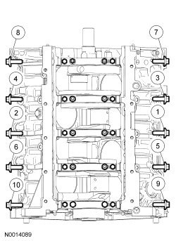 Tighten the vertical main bearing cap fasteners in the sequence shown, in 4 stages.
