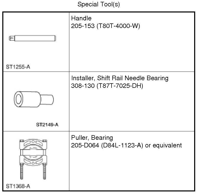 1. Using the Shift Rail Needle Bearing Installer, Handle, Bearing Puller and a hydraulic press, remove the 5th gear.