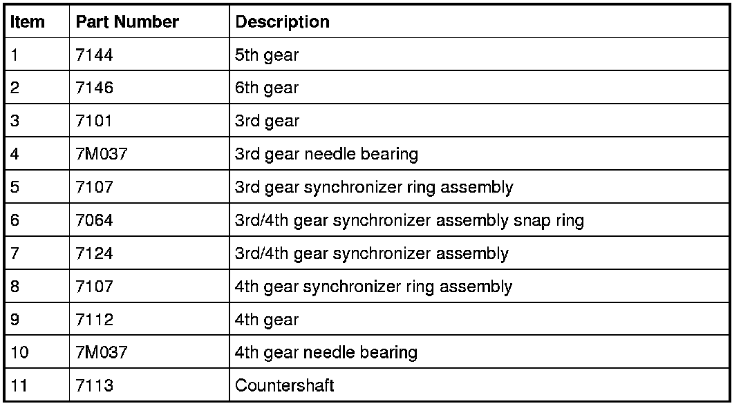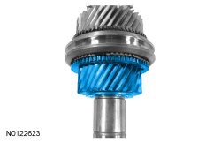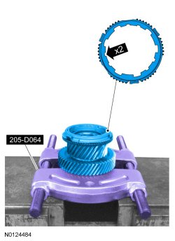 7. Using the Shift Rail Needle Bearing Installer, the Bearing Puller and a hydraulic press, remove the 4th gear and the 3rd/4th gear synchronizer assembly.