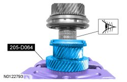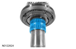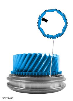 5. NOTICE: The 6 synchronizer ring tabs must engage into the 6 gear slots or damage to the synchronizer assembly and synchronizer ring assembly can occur.