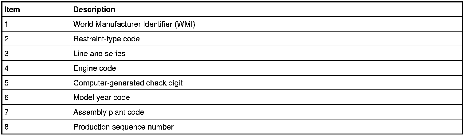 The last 6 VIN (Vehicle Identification Number) positions are the production sequence number. This number is also used as the vehicle serial and warranty number.