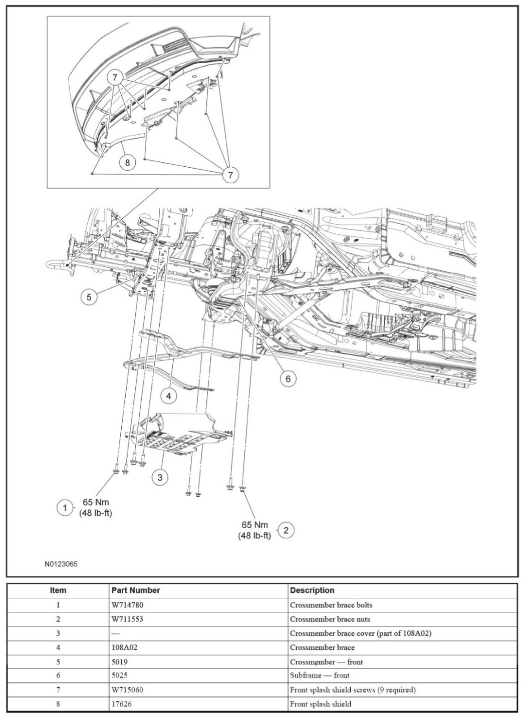 Crossmember Brace - Exploded View1. Refer to the procedures and/or exploded views in this section for any Warnings, Notices, Notes, Materials, Specifications, and Special Tools. Items in the exploded views may not be listed in order of removal.