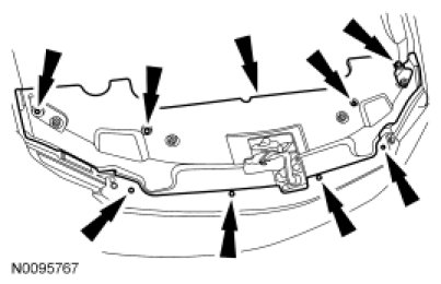 20. Install the radiator sight shield and the 8 pin-type retainers.
