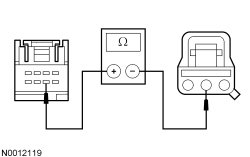 - Measure the resistance between exterior mirror control switch C527-6, circuit CPM23 (GY), harness side and RH exterior mirror C622-2, circuit CPM23 (GY), harness side.