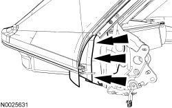 12. Remove the LH and RH bolts attaching the L-brackets to the quarter panel.