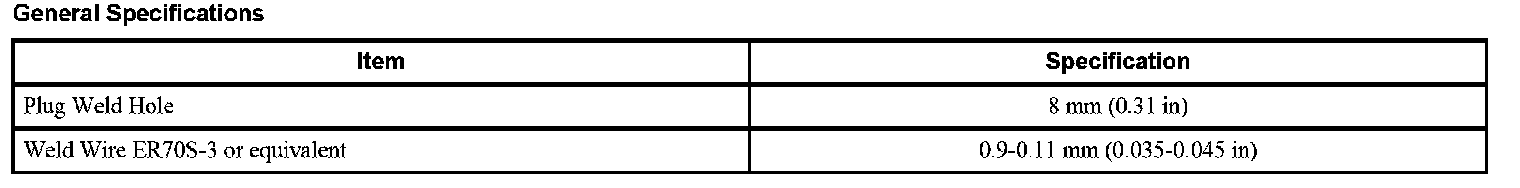 - Factory spot welds may be substituted with either resistance spot welds or MIG plug welds. Spot/plug welds should equal factory welds in both location and quantity. Do not place a new spot weld directly over an original weld location. Plug weld hole should equal 8 mm (0.31 in) diameter.
