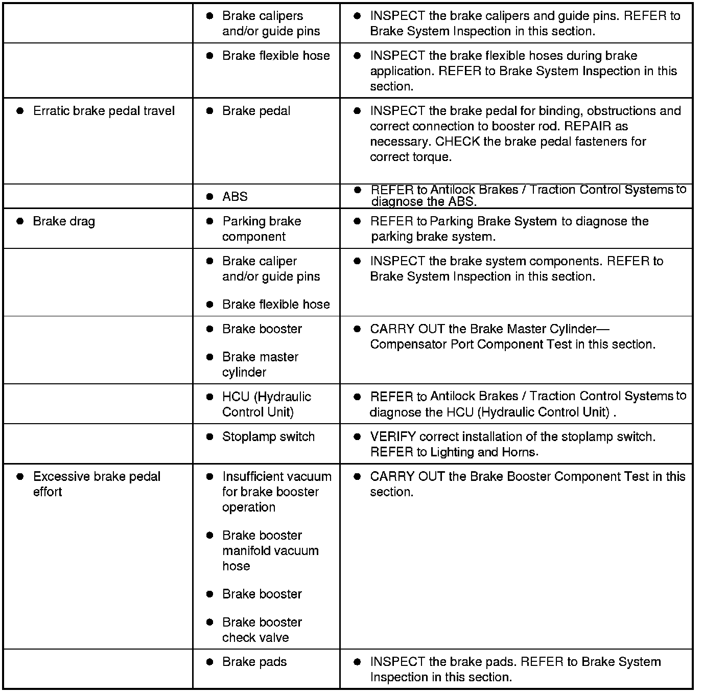 Symptom Chart - Brake System