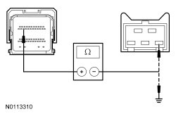 - Measure the resistance between the clutch pedal cruise control deactivator switch C277-3, circuit GD129 (BK/YE), harness side and ground.