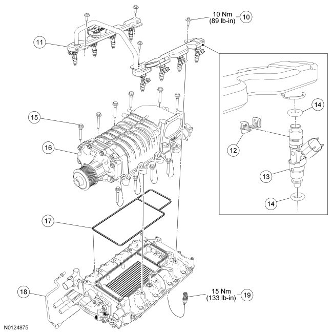 10. Install the fuel rail and fuel injector assembly onto the intake manifold.