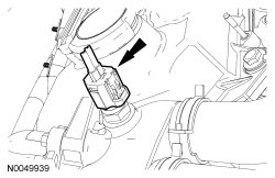 35. Disconnect the LH Heated Oxygen Sensor (HO2S) electrical connector and pin-type retainer.