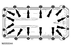- Remove and discard the oil pan gasket.