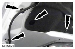 44. Install the 2 windshield washer hose retainers and the 8 hood insulation pin-type retainers (2 shown).