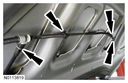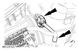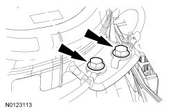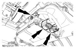 7. Connect the 2 Electronic Power Assist Steering (EPAS) electrical connectors and attach the wiring harness retainer.