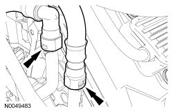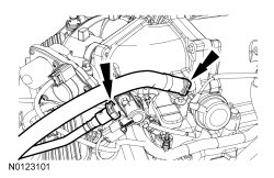 25. Connect the 2 heater hoses to the coolant tube assembly at the rear of the engine.