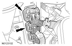 20. Connect the 16-pin electrical connector and attach the 2 wiring retainers.