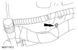 12. Attach the wire harness retainer to the A/C compressor stud bolt.