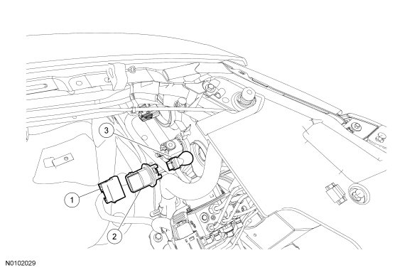1. For the LH front parking/turn lamp on vehicles equipped with High Intensity Discharge (HID) headlamps, remove the air cleaner. For additional information, refer to Fuel Delivery and Air Induction.