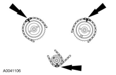 As a post-check, verify correct alignment of all timing marks. Make sure that the colored links are lined up with the marks on the crankshaft sprocket and the camshaft sprockets.