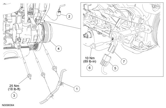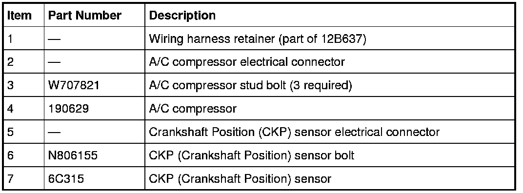 NOTE: The A/C compressor must be positioned aside to access the Crankshaft Position (CKP) sensor, it is not necessary to remove the A/C compressor from the vehicle.