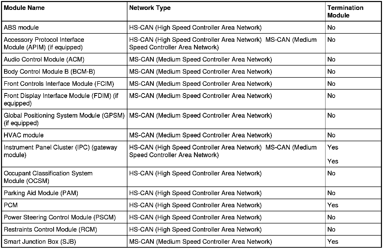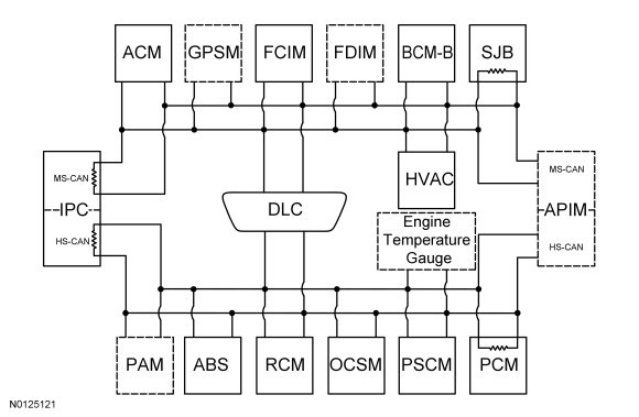 The IPC (Instrument Panel Cluster) is the gateway module, translating messages on the HS-CAN (High Speed Controller Area Network) to MS-CAN (Medium Speed Controller Area Network) and vice versa. This allows a message to be distributed throughout both networks.