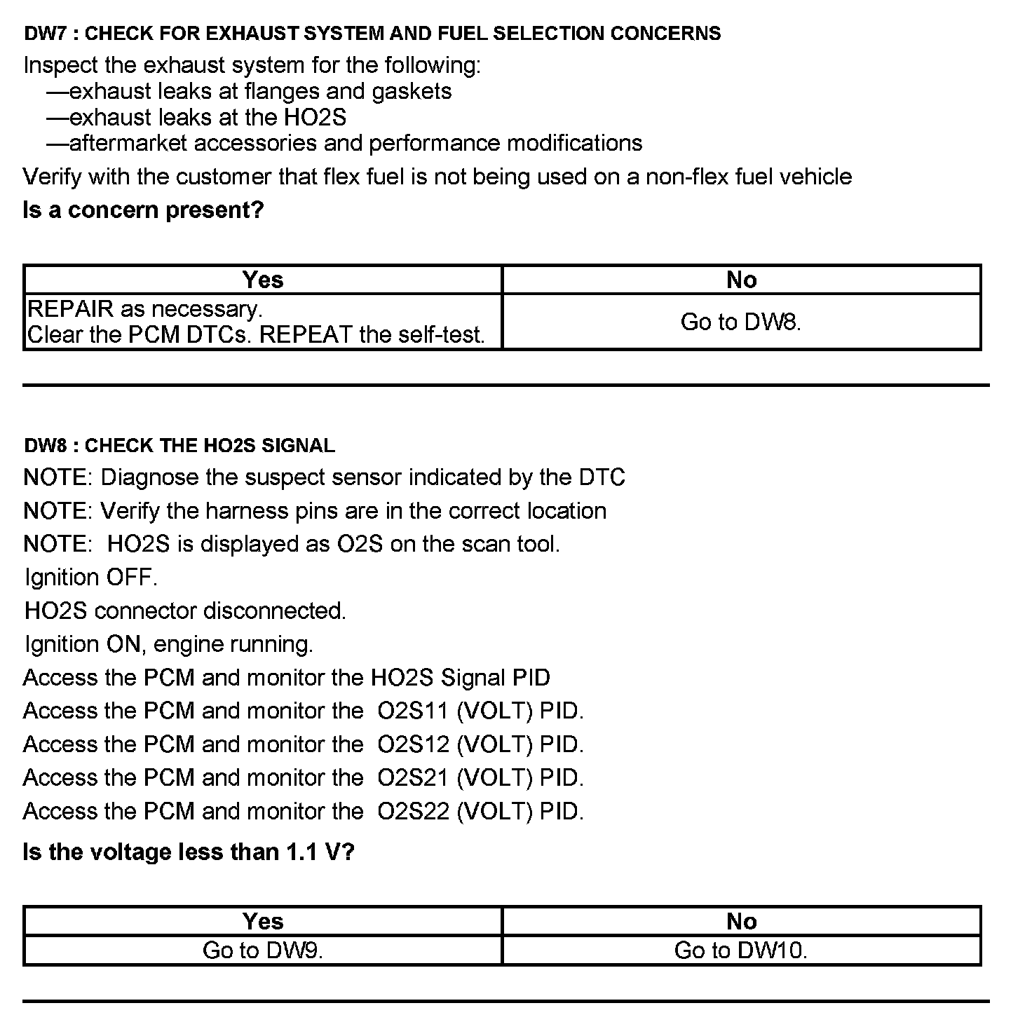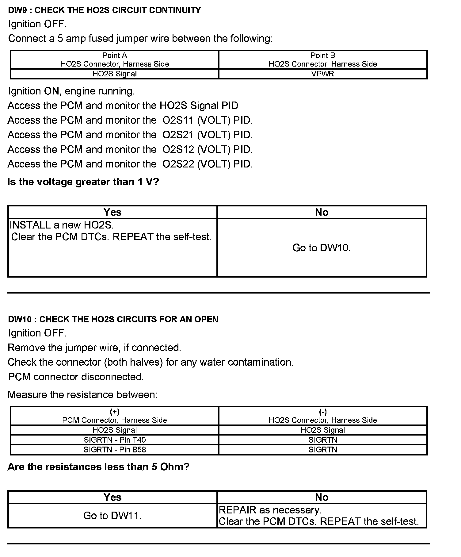 Test DW: Heated Oxygen Sensor (HO2S)