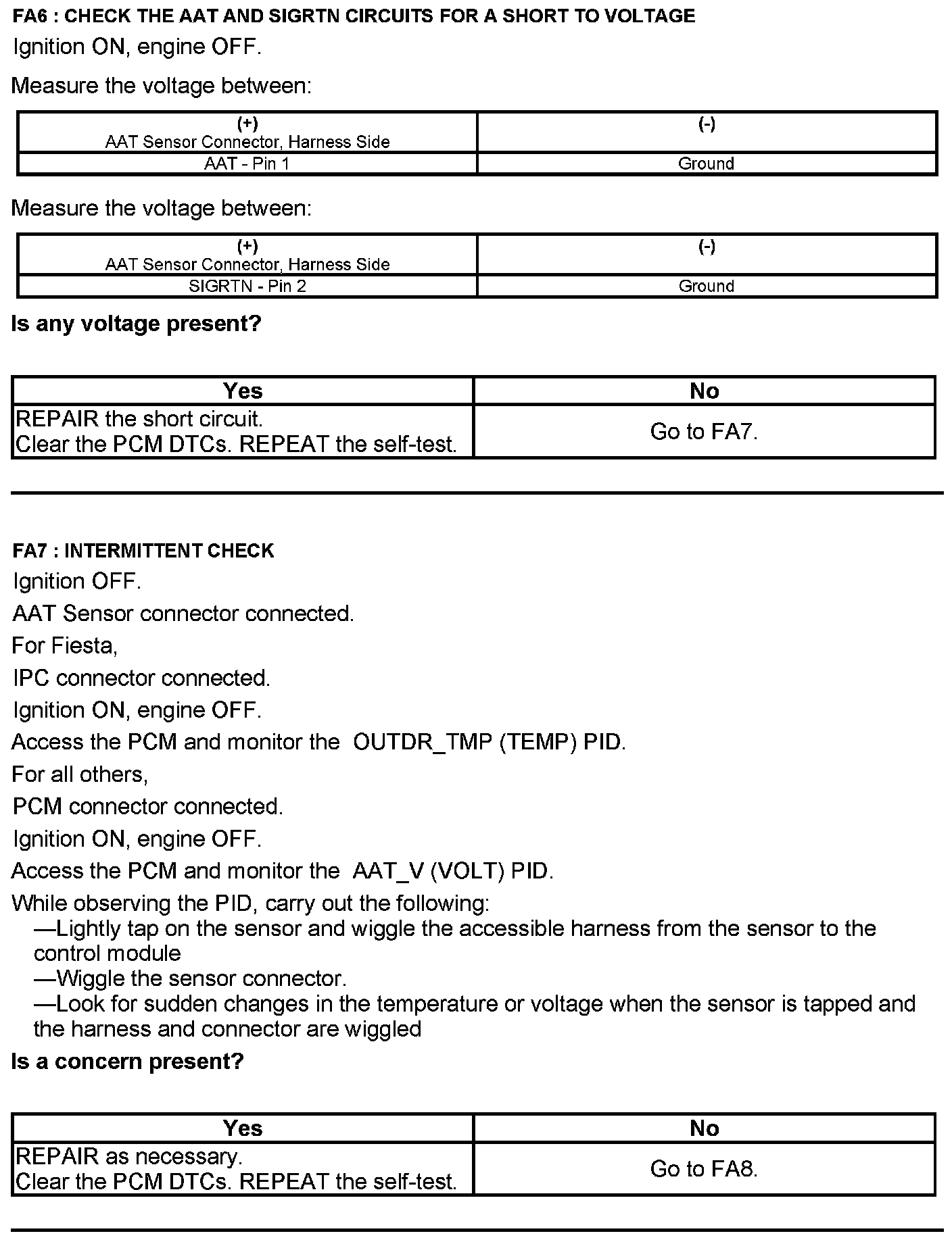 Test FA: Ambient Air Temperature (AAT) Sensor
