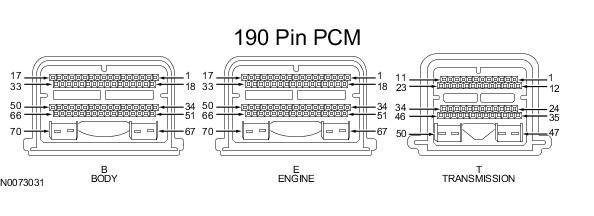 Powertrain Control Module (PCM) Connector - For PCM connector views or reference values, refer to Reference Values.
