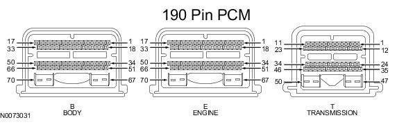 Powertrain Control Module (PCM) Connector - For PCM connector views or reference values, refer to Reference Values.