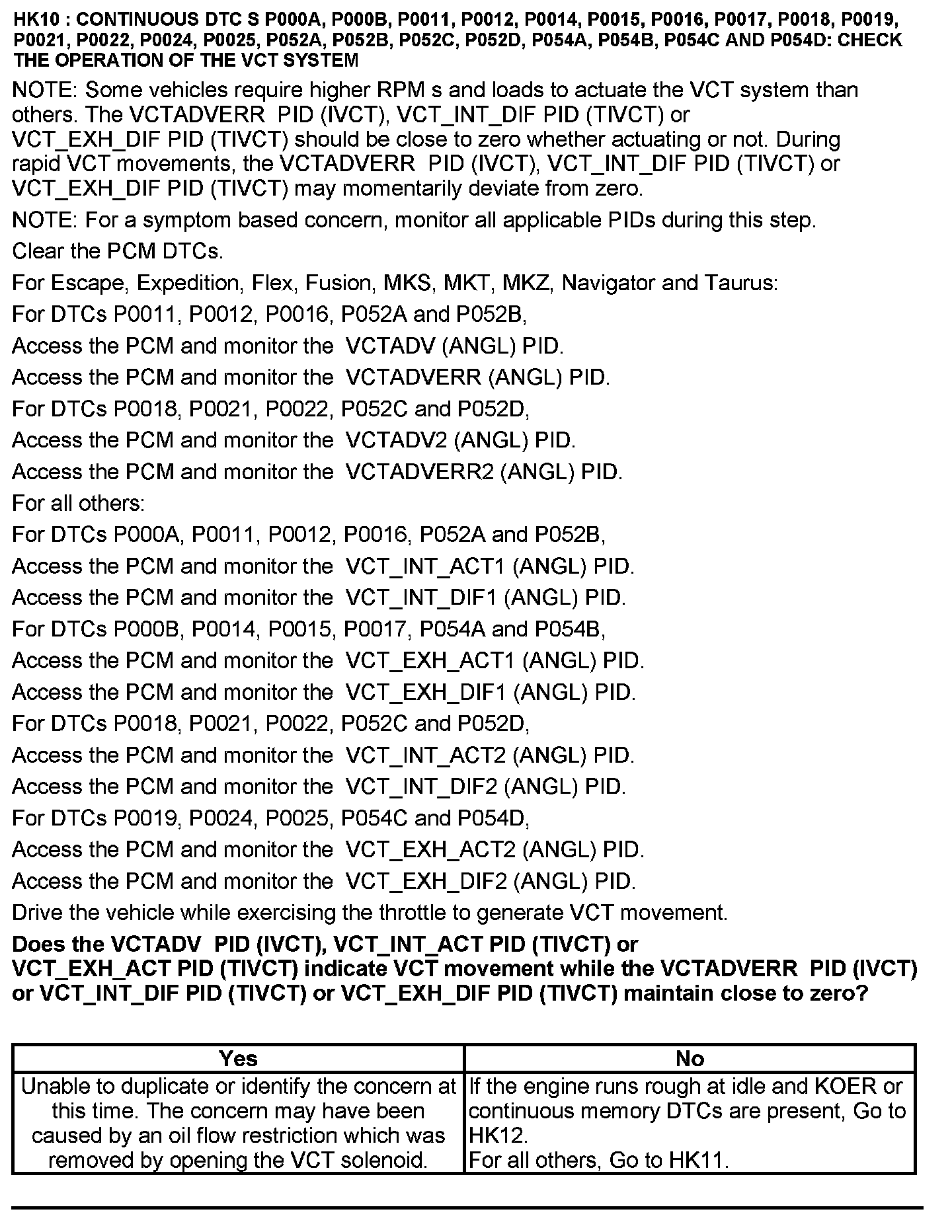 Test HK: Variable Camshaft Timing (VCT)