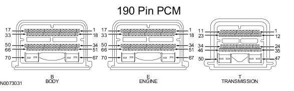 Powertrain Control Module (PCM) Connector - For PCM connector views or reference values, refer to Reference Values.