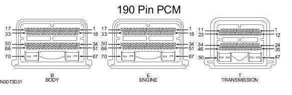 Powertrain Control Module (PCM) Connector - For PCM connector views or reference values, refer to Reference Values.