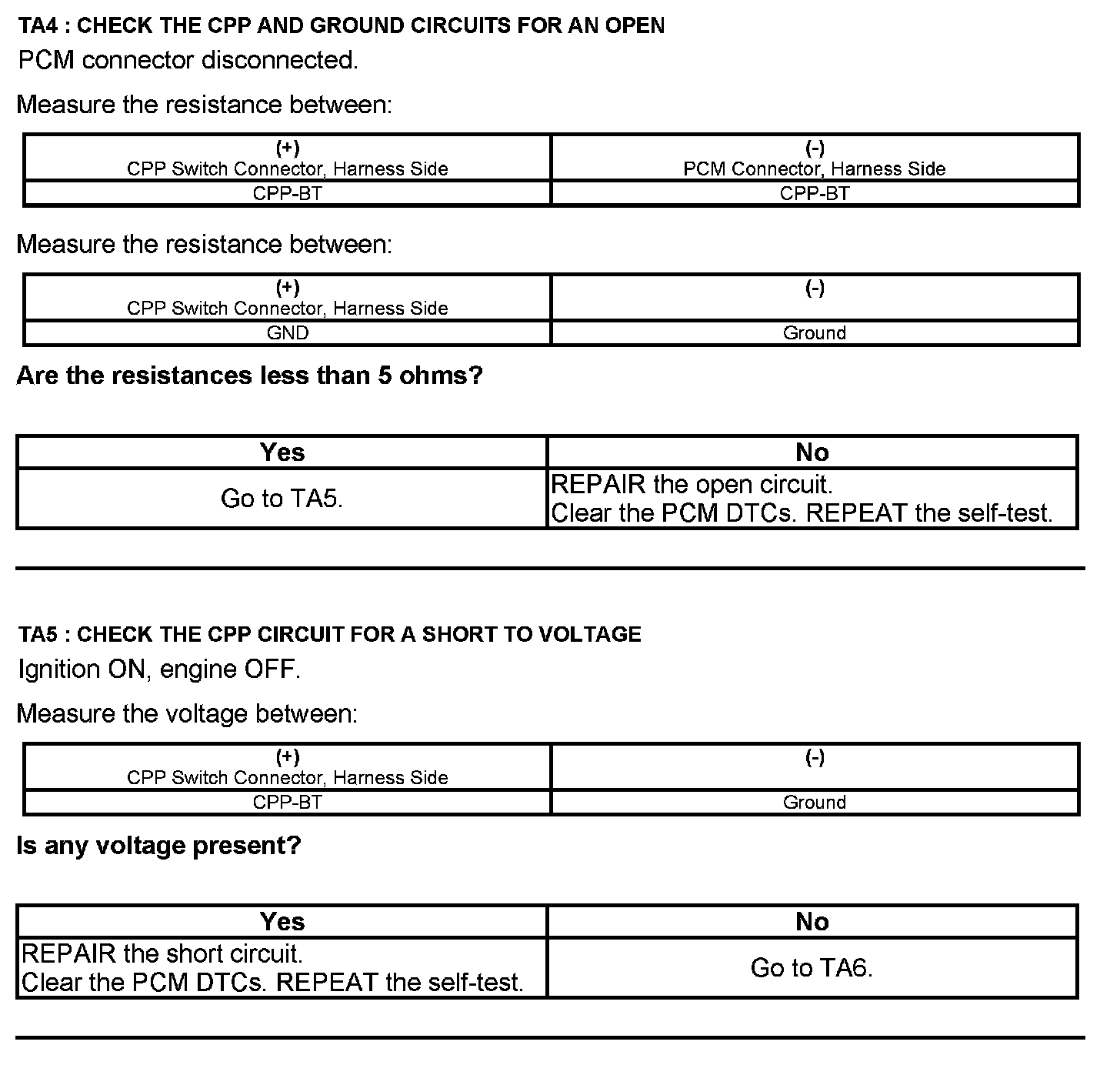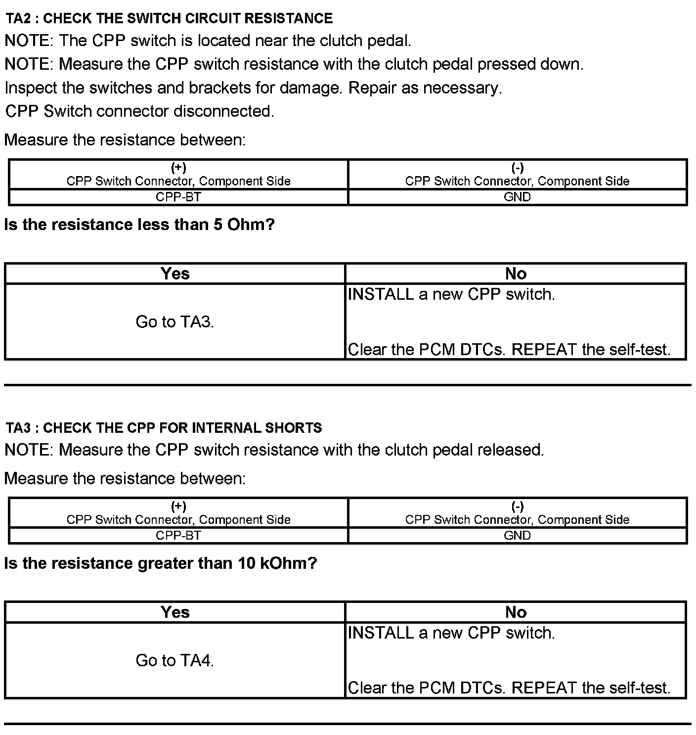 Test TA: Clutch Pedal Position (CPP#2) Switch