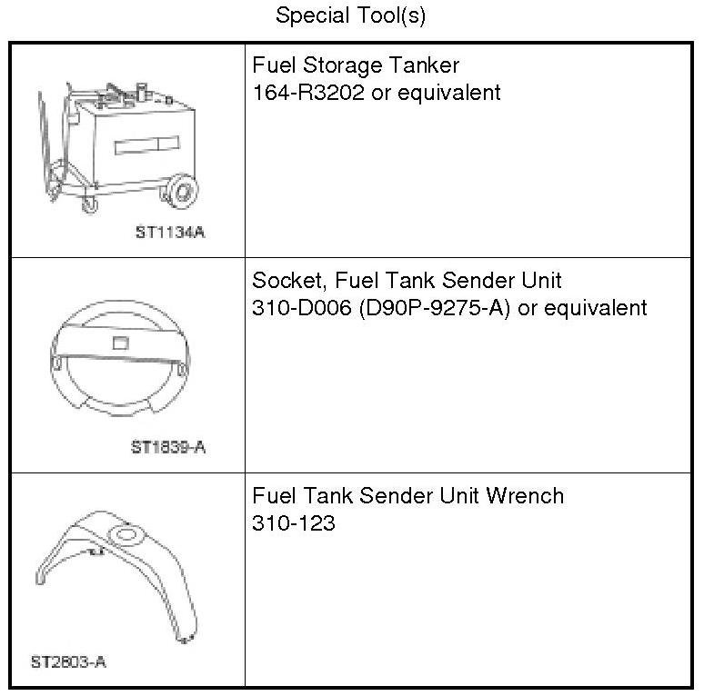 4. NOTE: This step is to remove approximately one-eighth tank of the fuel from a completely full fuel tank and the majority of any residual fuel in the fuel tank filler pipe, lowering the fuel level below the Fuel Pump (FP) module mounting flange.