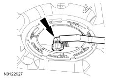 18. NOTICE: Carefully install the Fuel Tank Sender Unit Socket to avoid damage to the fuel level sensor when removing the lock ring.