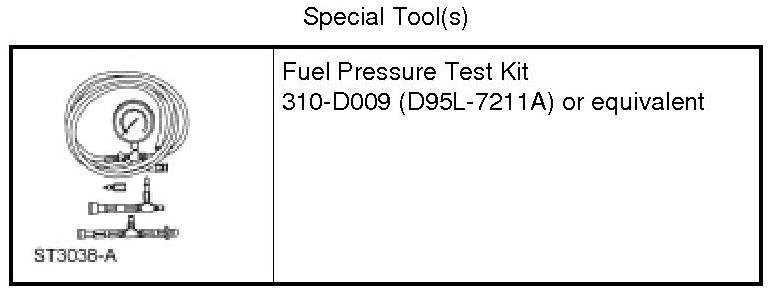 Test the fuel system pressure to make sure it is within the specified range. For additional information, refer to Specifications.