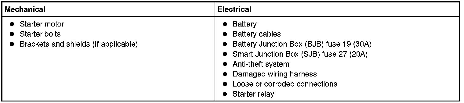 NOTE: The anti-theft system must be functioning correctly before a logical starting system diagnosis can be carried out. Address anti-theft system concerns before continuing. Refer to Antitheft and Alarm Systems.