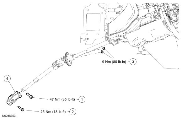4. Remove and discard the steering column coupling-to-steering gear bolt.