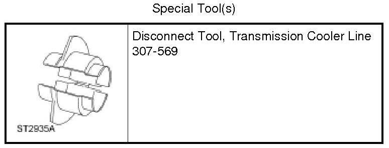 7. Using the Transmission Cooler Line Disconnect Tool, disconnect the transmission cooler tube assemblies.