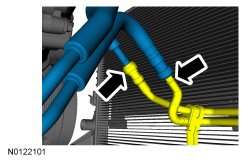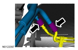 2. Install the front transmission cooler tube assembly in the vehicle. For additional information refer to Transmission Fluid Cooler .