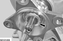 - After installing the new output shaft flange nut, stake the slots to prevent it from coming loose.