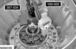 50. Install the Transmission End Play Gauge on the input shaft to measure the end play.