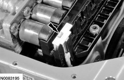 59. Press down on the tab and lock the outer shell of the bulkhead electrical connector in place. Make sure the locking tab is securely locked.