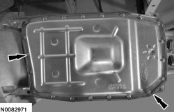 62. Install the transmission fluid pan and transmission fluid pan bolts. Tighten in a crisscross pattern.